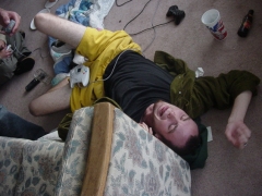 At home I told all my bro's and ho's.... um yea. Then I sat outside and wondered if it would rain. It did, so i layed in it for a bit, but went inside so as to not get my bandage wet. But i watced it pour for about ten minutes. It was really nice. Big ol drops, that fluxuated, hard then soft.