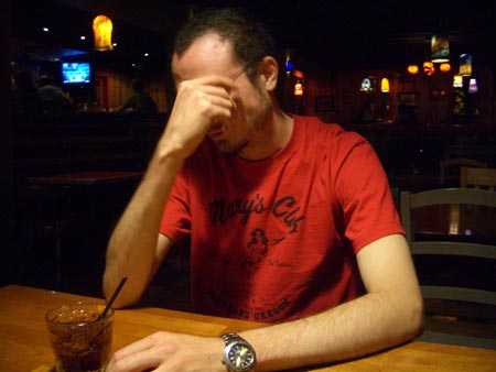 so as i'm sitting there, smoking a cigarette and drinking my vodka, a man walks up to me and strikes up conversation. about what, i really don't remember; it was pretty uninteresting. but towards the end of the conversation he looks at me and laughs, then says: