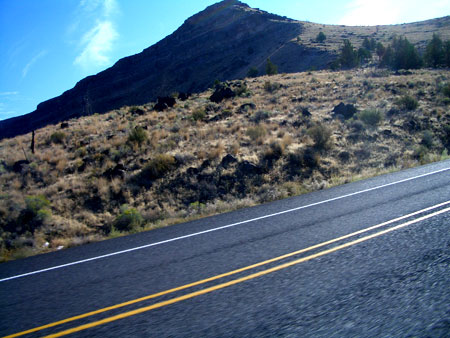 Uncle Bill's -- Simple. Out in the middle of nowhere. I got up at 5:30. Got gas. Checked the tire pressure, thew in a bit of oil and drove my fucking ass off to easternish oregon. Ms. Kim had to work, so I drove it alone. Beautiful terrain. I listened to some good tunes and watched the trees turn into pasture turn into an even more arrid climate.